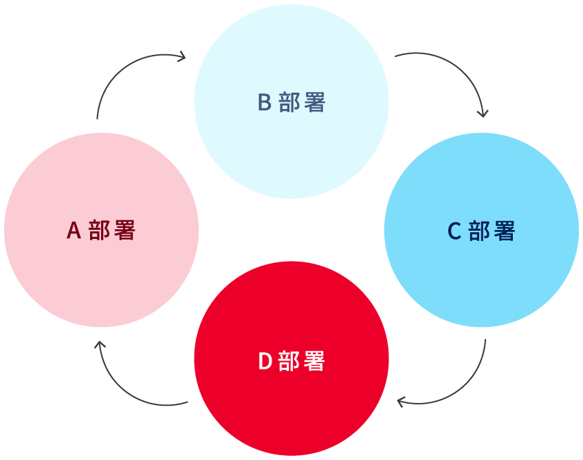 ジョブローテーション制度を導入しており、数年おきに部署異動を実施し、さまざまなご経験を積んでいただきたいと考えています。また定期的に人事面談を行い、今後のキャリアを一緒に考える時間を設けています。